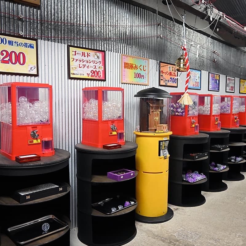 いろいろなアクセサリー、消しゴムをはじめ懐かしいガチャガチャにチャレンジ。