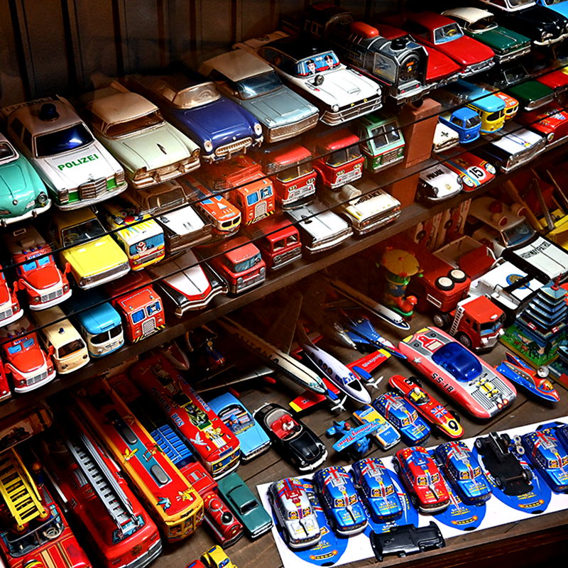 昭和30〜40年代の街並みを再現。昔懐かしいブリキのおもちゃ、世界各国の珍しいお人形が勢揃いして皆様をお迎えいたします。