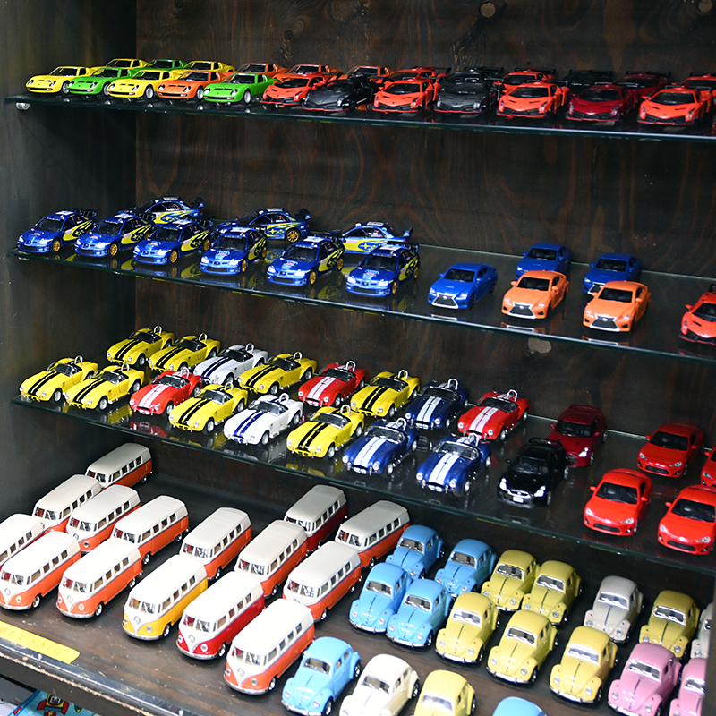 林部研一氏のカーイラストや、頭文字Dの商品など博物館ならではのグッズも人気です。
